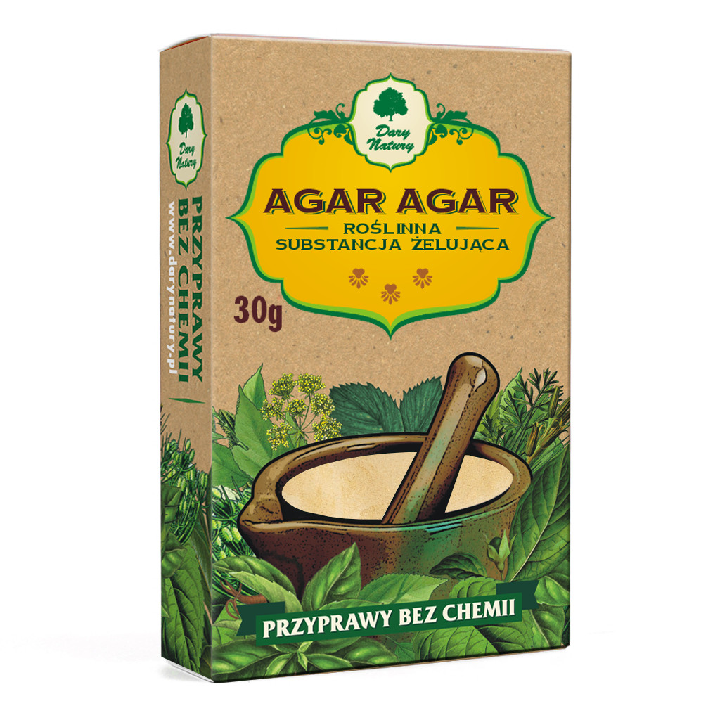 Agar-agar is obtained from seaweed. It is a natural plant substance replacing gelatin. It is much healthier and more efficient than it, contains 80% fiber. It has no color, taste or smell, so it does not spoil the features of the prepared dishes.